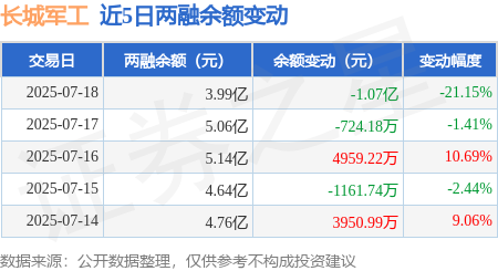 本站消息易策略,7月18日,长城军工(601606)融资买入1.84亿元,融资偿还2.9亿元,融资净卖出1.07亿元,融资余额3.95亿元。