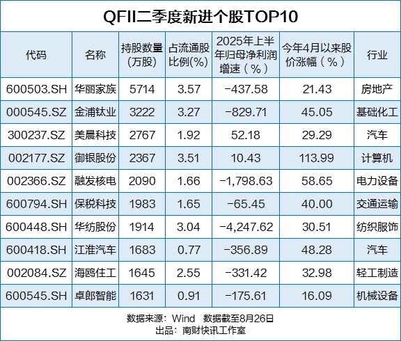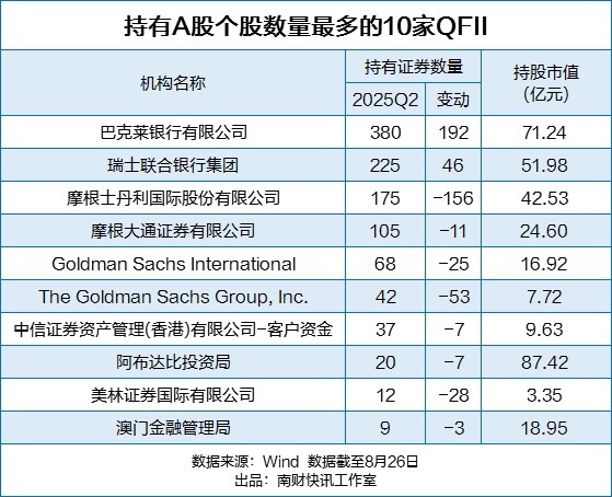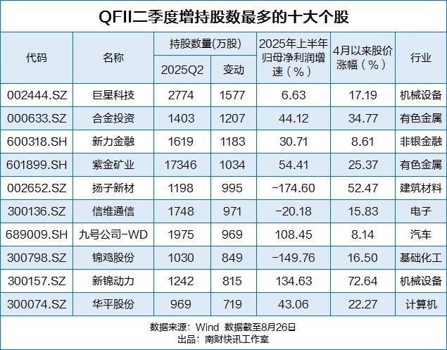 哪些国际机构用“真金白银”加码A股?哪些股票最受外资青睐?上市公司2025年中报正密集披露中,QFII(合格境外机构投资者)二季度末重仓股及持股变动情况也随之浮现。